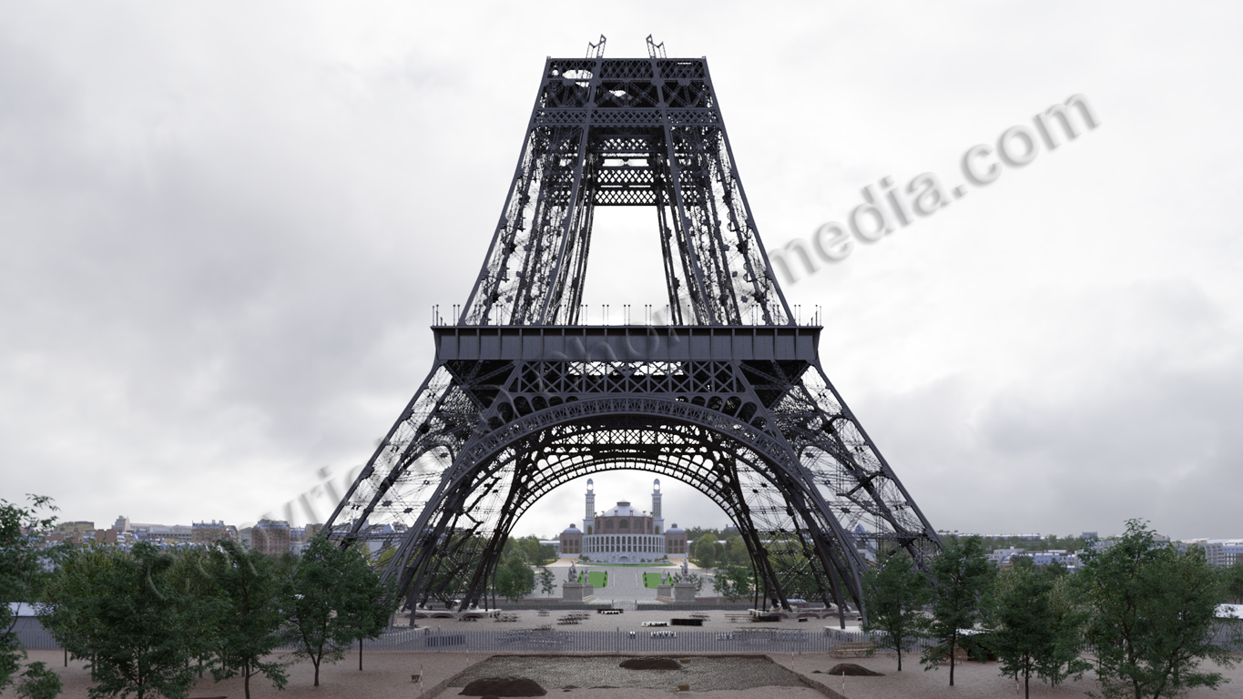 I decided to model the Eiffel Tower, Paris, including lots of details such as elevators, spiral stairs, even taking care of the rivets.