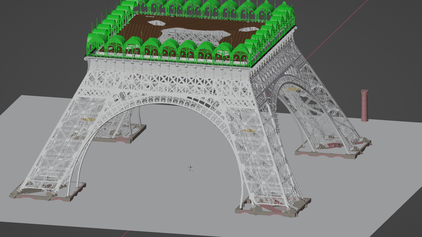 Between the legs they added the "Arc décoratif" which gives the Tower's lower part its well-known shape: