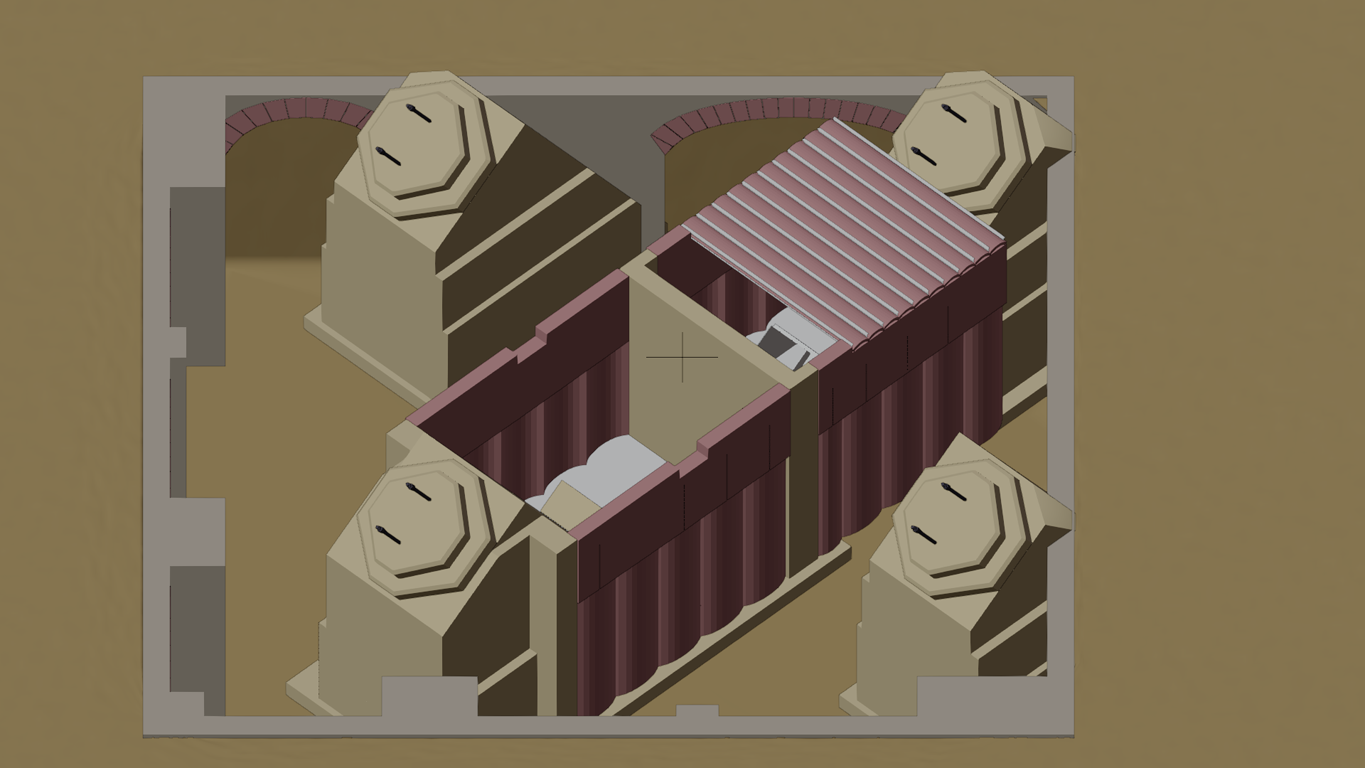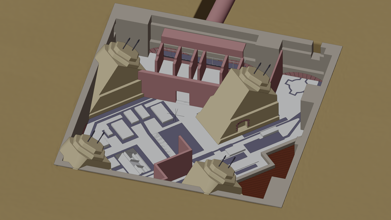 The exception is the Southern substructure which hosts a complete machine room and some ventilation system (you may recognize the tunnel leading to the chimney on top of the pic):