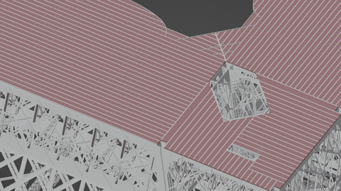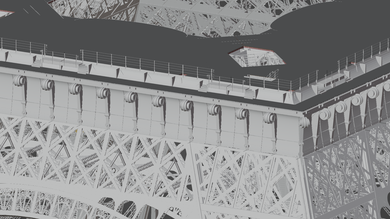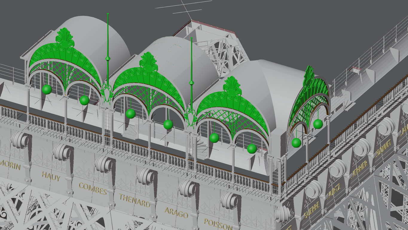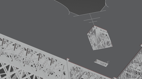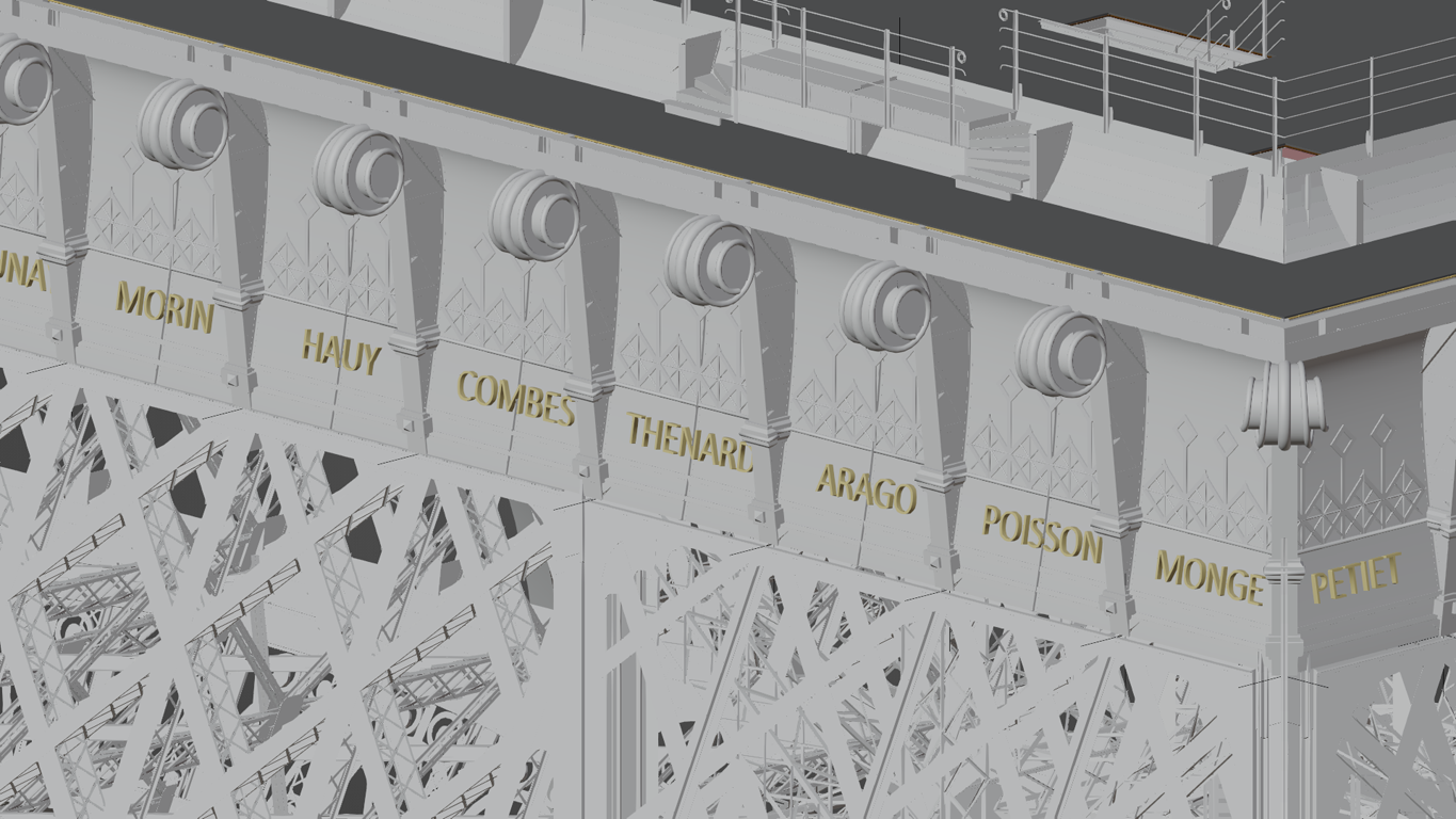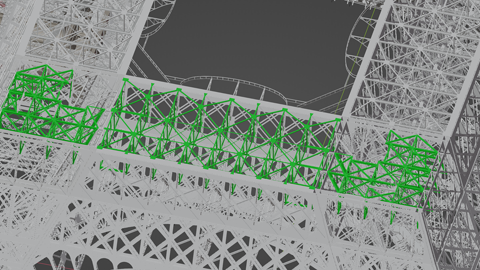 The gallery is attached to Panneau 5 resp. the Grand Poutre and surrounds the Tower's first floor: