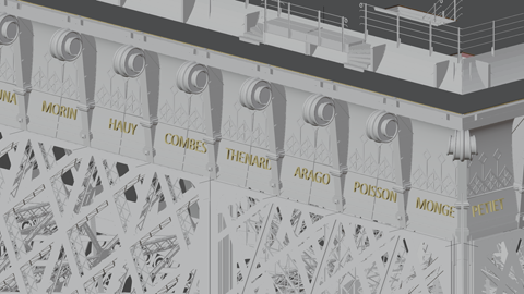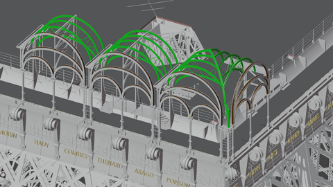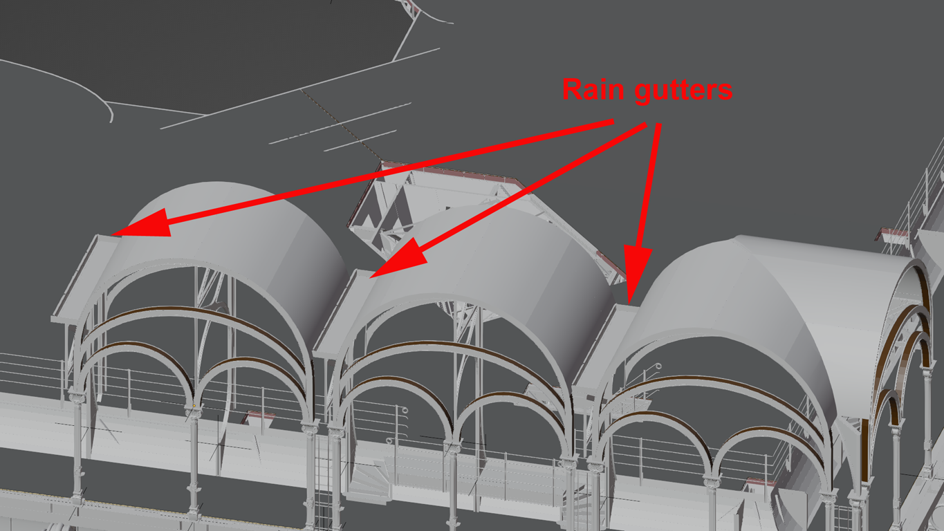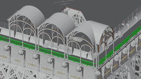 On most pics the pillars carrying the gallery look as if being quite massive - of course they're not. Like the Arbalétriers they're fit together from iron sheets and angled irons: