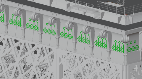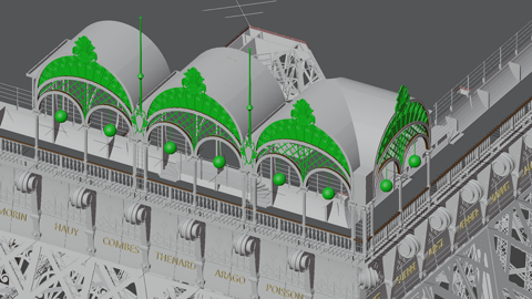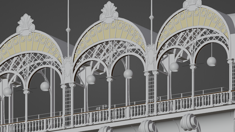 Finally we'll add some decorative elements, some lamps and some flagstaffs: