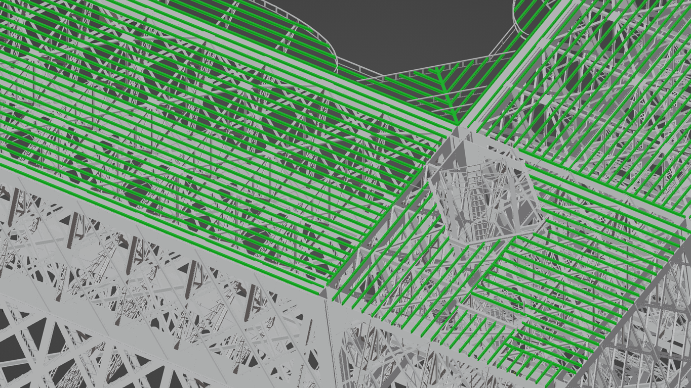 On top of this framework you'll find a system of smaller irons ("Solives"). They're most important to distribute the weight: