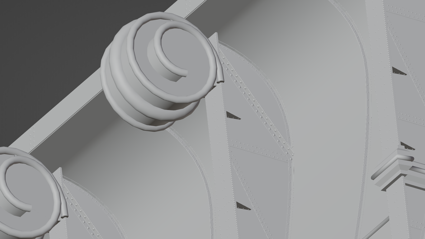 (By the way: you might miss the rivets. But having thousands and thousands of rivets even now extremly slowed my system down. So I switched them off for viewport work, but of course they will be rendered.)