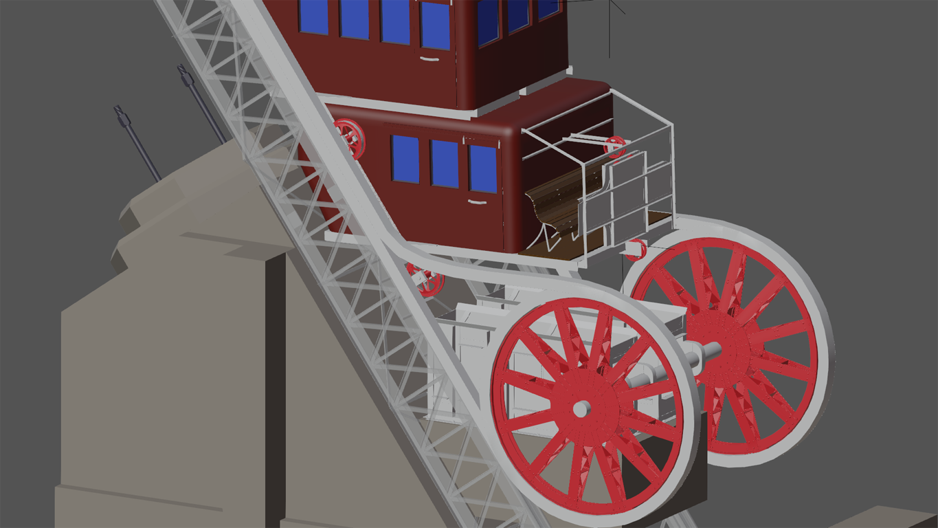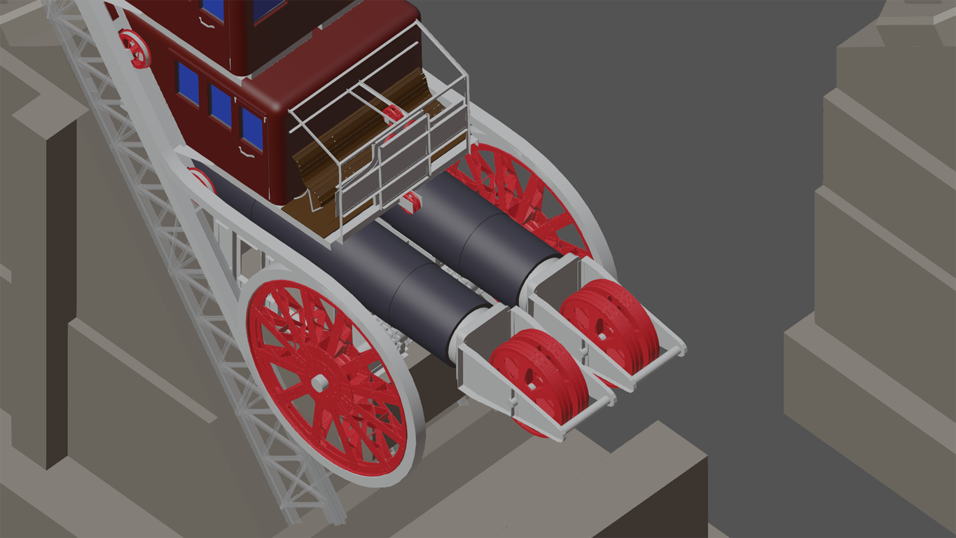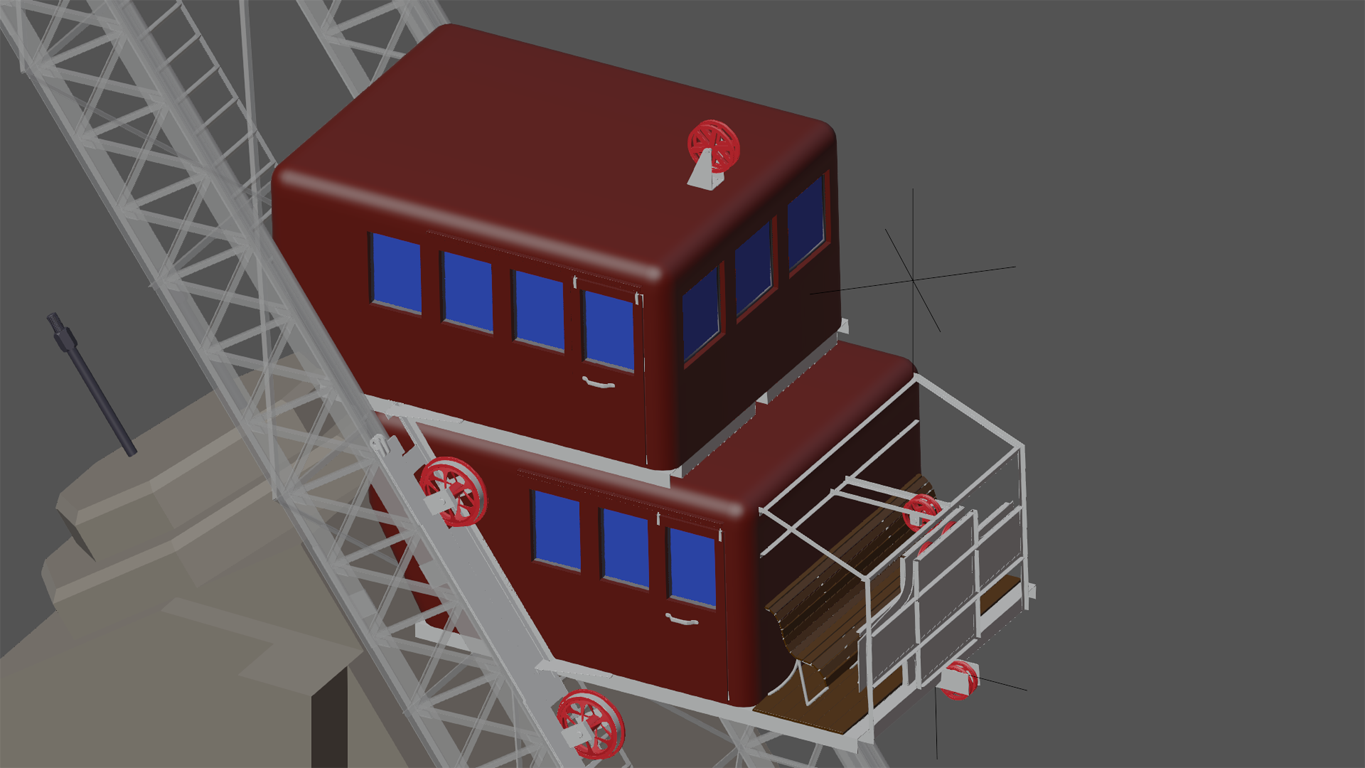 The vehicle is slightly different from the Otis one. Main difference is that passengers enter from the side instead from front. The front space was used for some complex steering mechanism (we're gonna have a look at it later):