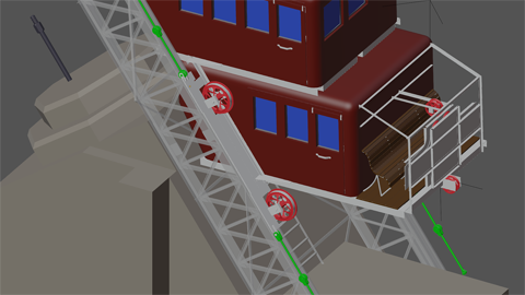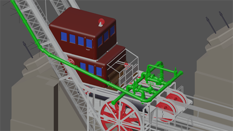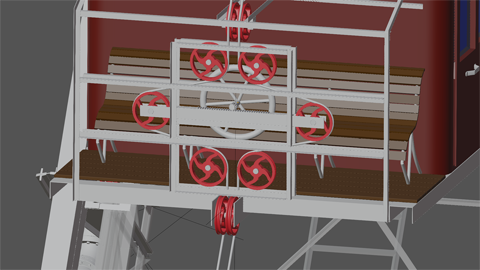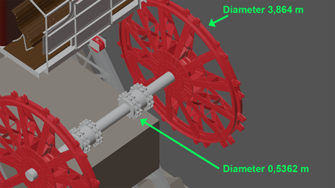 The chain was protected by a blend and passed some huge wheels on bottom and top. Having about 3,5 to 4 meters in diameter those wheels have been quite impressive - you might have noticed them on some historical photos: