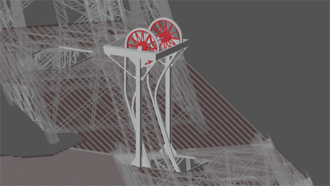 Like the Otis elevator the Combaluzier system was driven by water, which was as well taken from the two big tanks on the second floor that have been introduced on the last page: