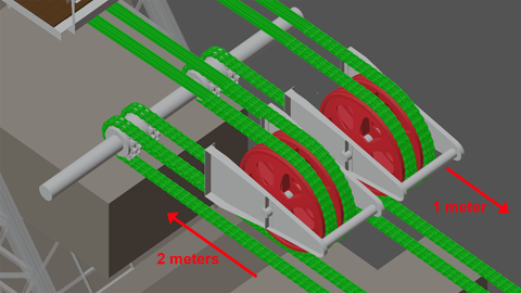 ... having some wheels being attached to the piston's end. A so called gall chain is led through the system. The chain (named after its inventor André Galle, 1761 - 1844) is fixed to the cylinder's back side and therefor together with the piston's wheels represents a tackle with one turn: