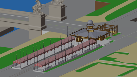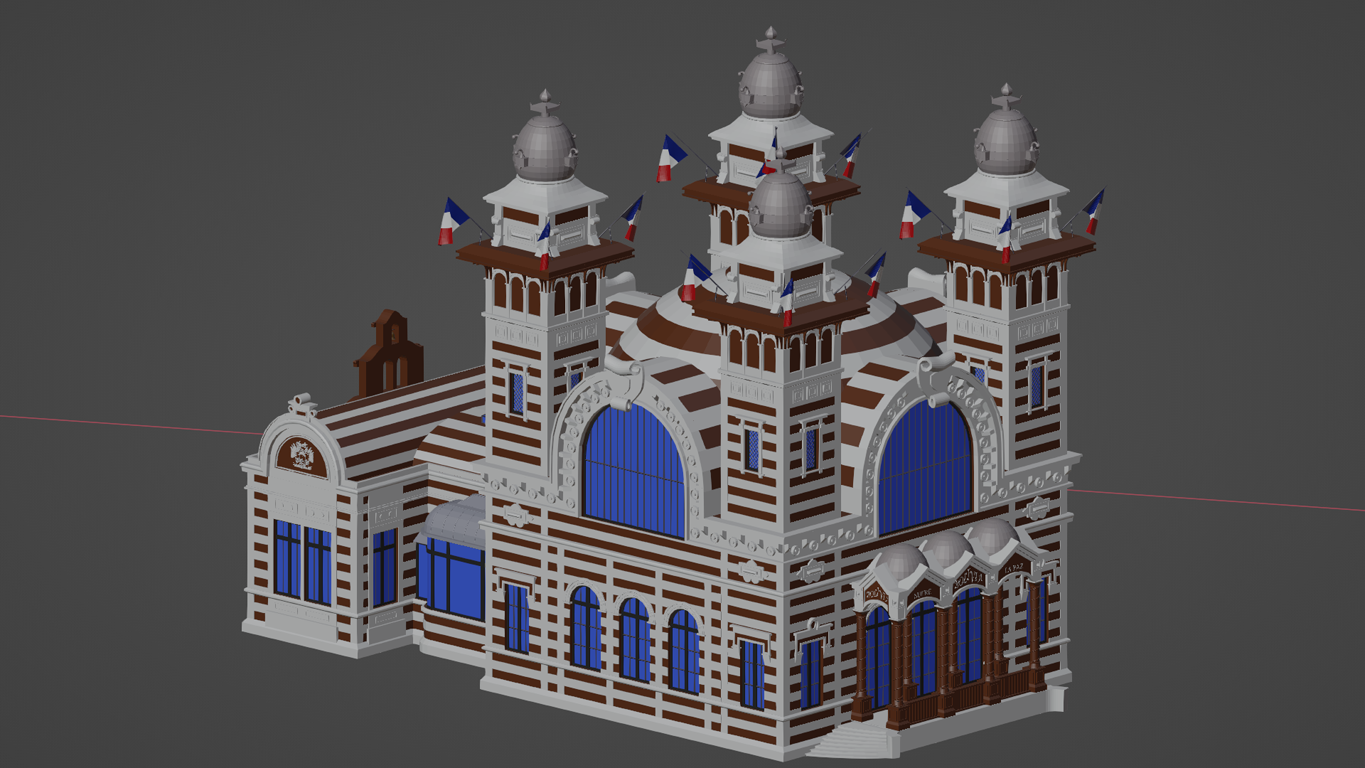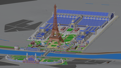 Wow, modelling those pavilions had been quite a challenge! Even the Champs de Mars contains dozens of them, and each one is totally unique. But not only that - getting qualified reference was quite hard. In most cases there don't exist any architectual drawings anymore.