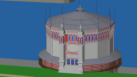 Another problem was the level of details. Of couse those pavilions are scenery work and shouldn't abstract from the Tower, but unfortunately being located around the Tower's legs they are not part of the background. Doing closeup renders of some Tower details meant having parts of a pavilion in the foreground...