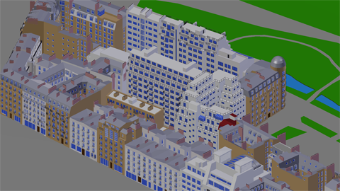 First I decided to ignore them; actually I didn't plan to do any aerial renders, so I thought about saving a lot of time by concentrating on perspectives being visible for every tourist in the streets of Paris... But after a while I found myself being more and more annoyed by blank, empty faces and "dummy houses" located inside a city block. Maybe tourists never would see them in real life, but I did - at least in my 3D view.