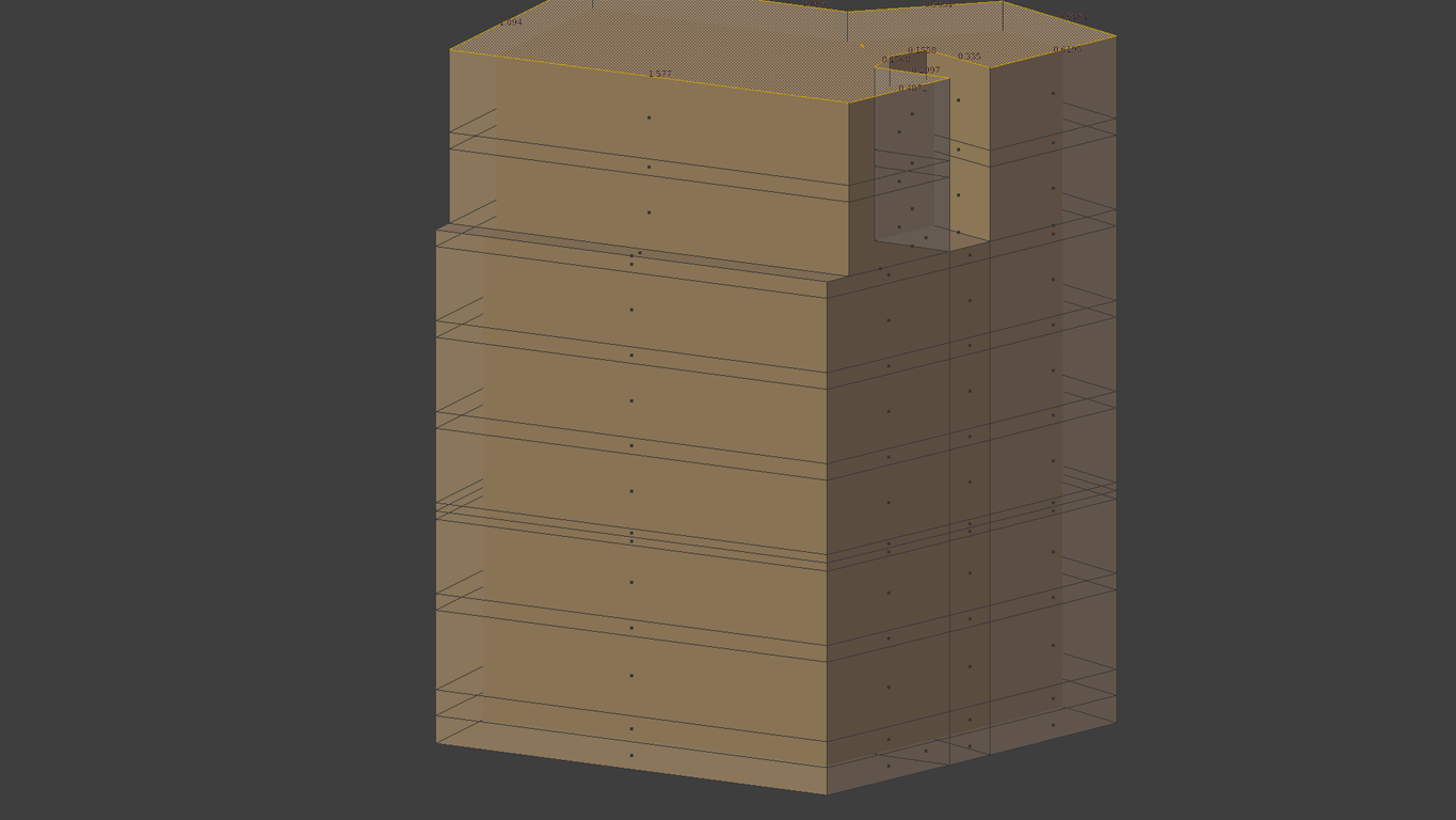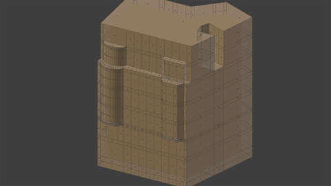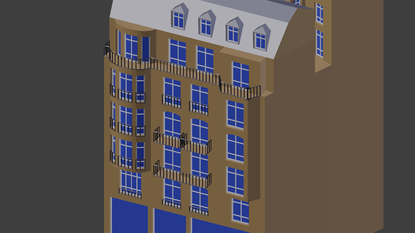 8. Balconys are simple faces (although I might give them some thickness with Solidify modifier someday). Railings are done by the use of Wireframe modifier.