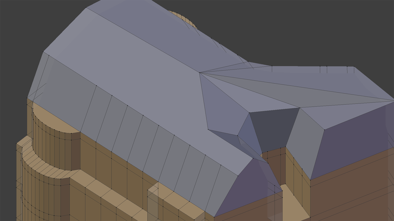 4. Detailling roof a little by subdividing, lifting and inclining different parts (I guess this is quite important, 'cause it gives you some different angled faces which will reflect the light in different ways; although I don't try to copy real life too accurate here):