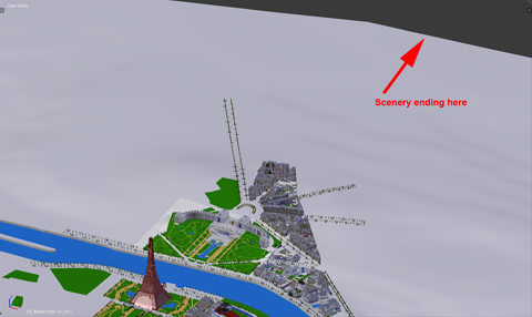 After modelling another cityblock next to the Trocadero I decided to re-creatre the landscape once more. I suddenly became aware of my original landscape ending shortly above the Trocadero, and I didn't want to have "land's end" being visible from the top of the tower: