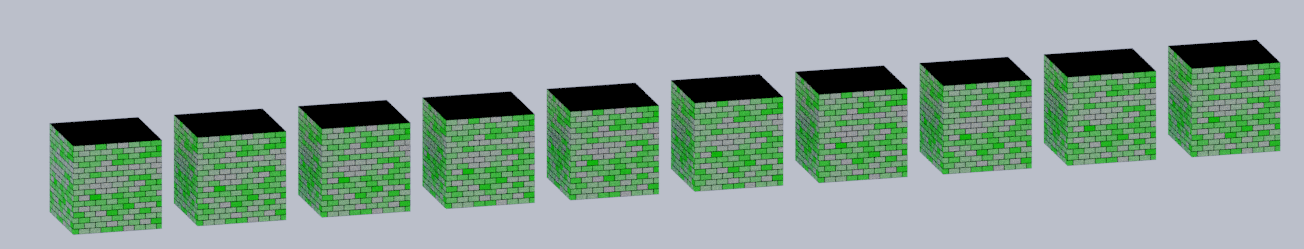 The brick materials may be worth having some words about. I'm using three of them: a red one, another more yellowish, and a very bright one. I use different brick sizes for each color of course.