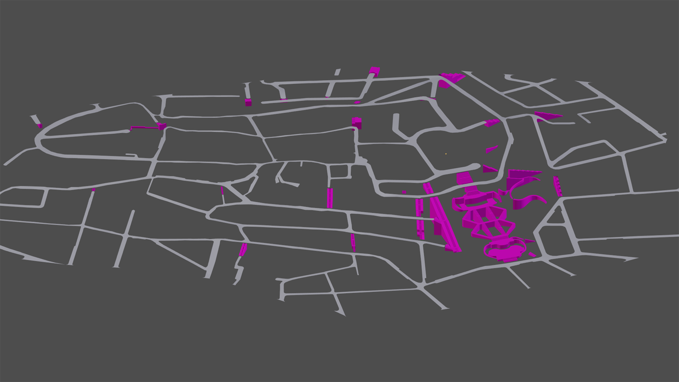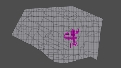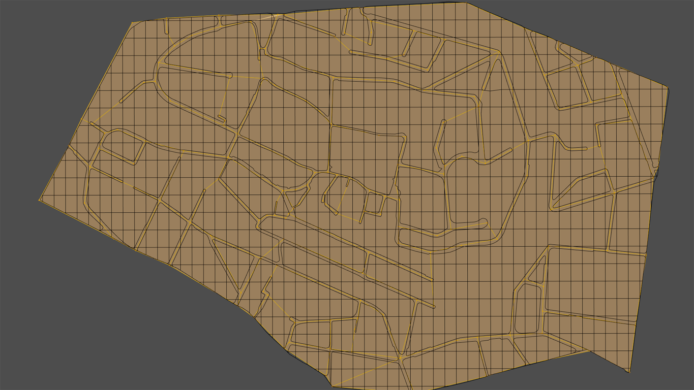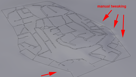 So next step was duplicating the relevant region and cutting out the road system. Because the original elevation wasn't needed anymore I scaled it to Z=0: