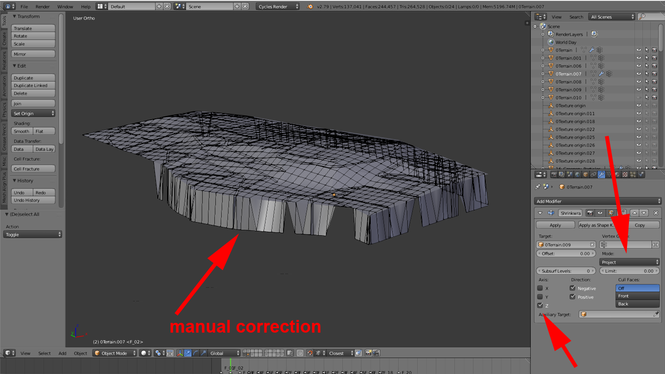 Next step was working through all those verts, lifting and declining them due to the official IGN elevation data. Should give me some quite strange, non-planar mesh I planned to use as base and skrinkwrap my terrain onto it: