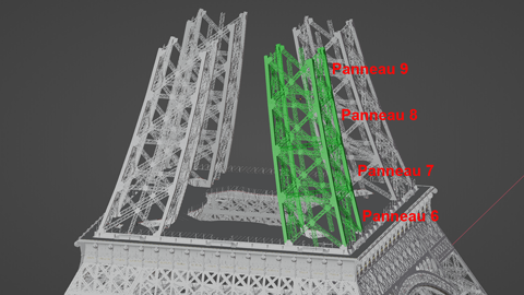 The panneaux follow more or less the same principles than the panneaux 1-4, with one exception: distances and angles vary from one panneau to the other as well as within the panneaux: