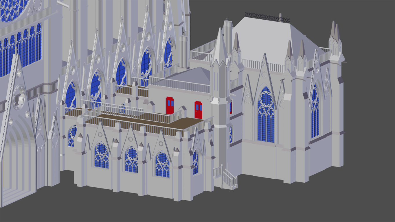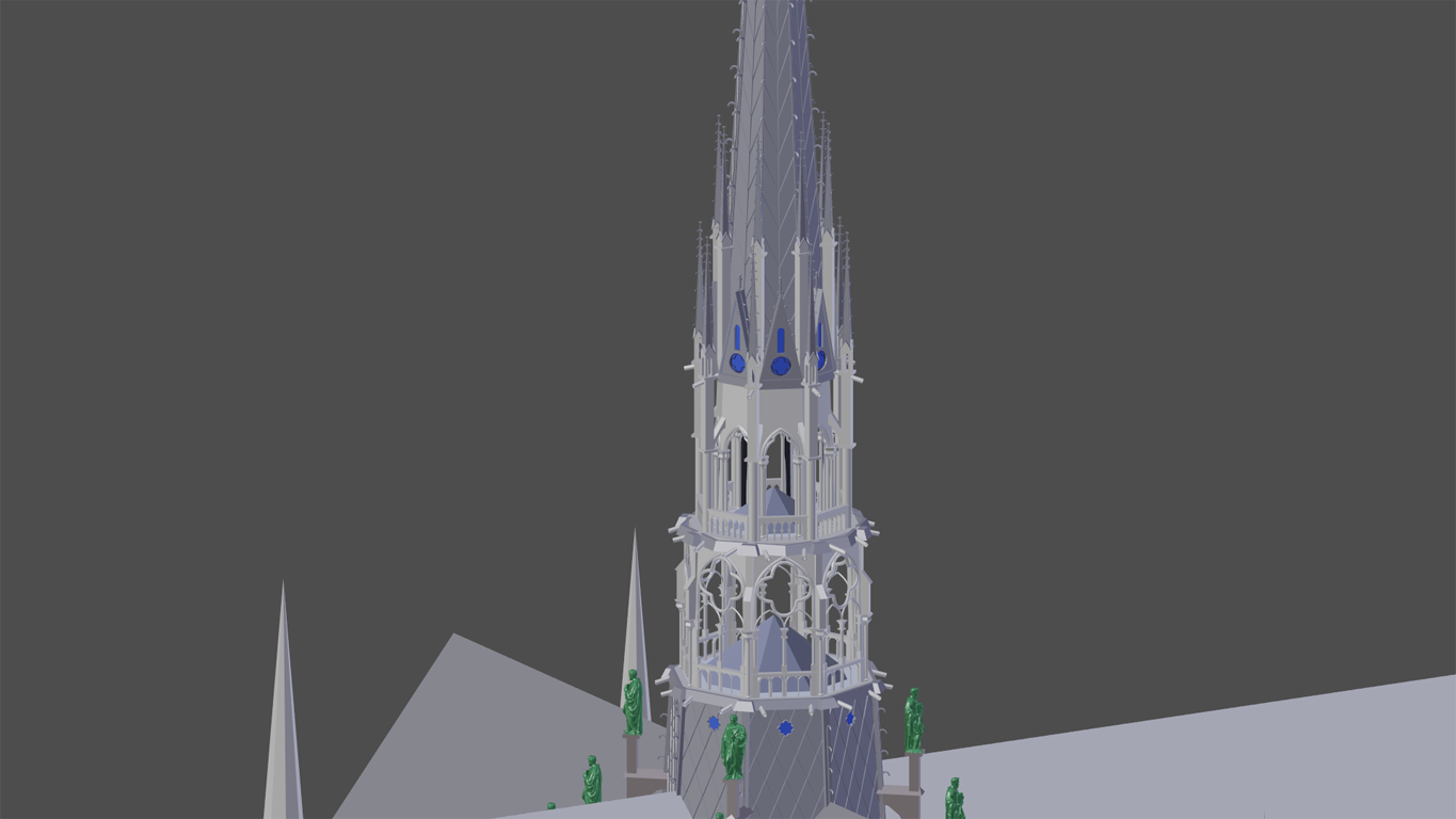 You might be interested in the level of details: I increased it a little bit, but it wasn't too hard. The cathedral consists of lots of repeating elements - which meant: model one, use multiple. Of course working with linked data was the way to go. Just compare:
