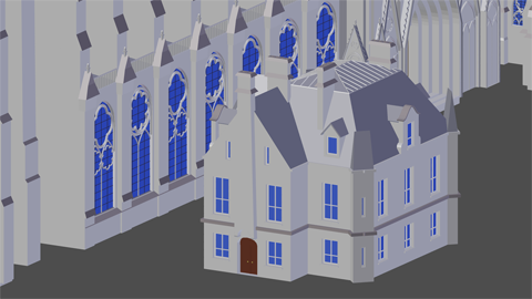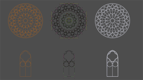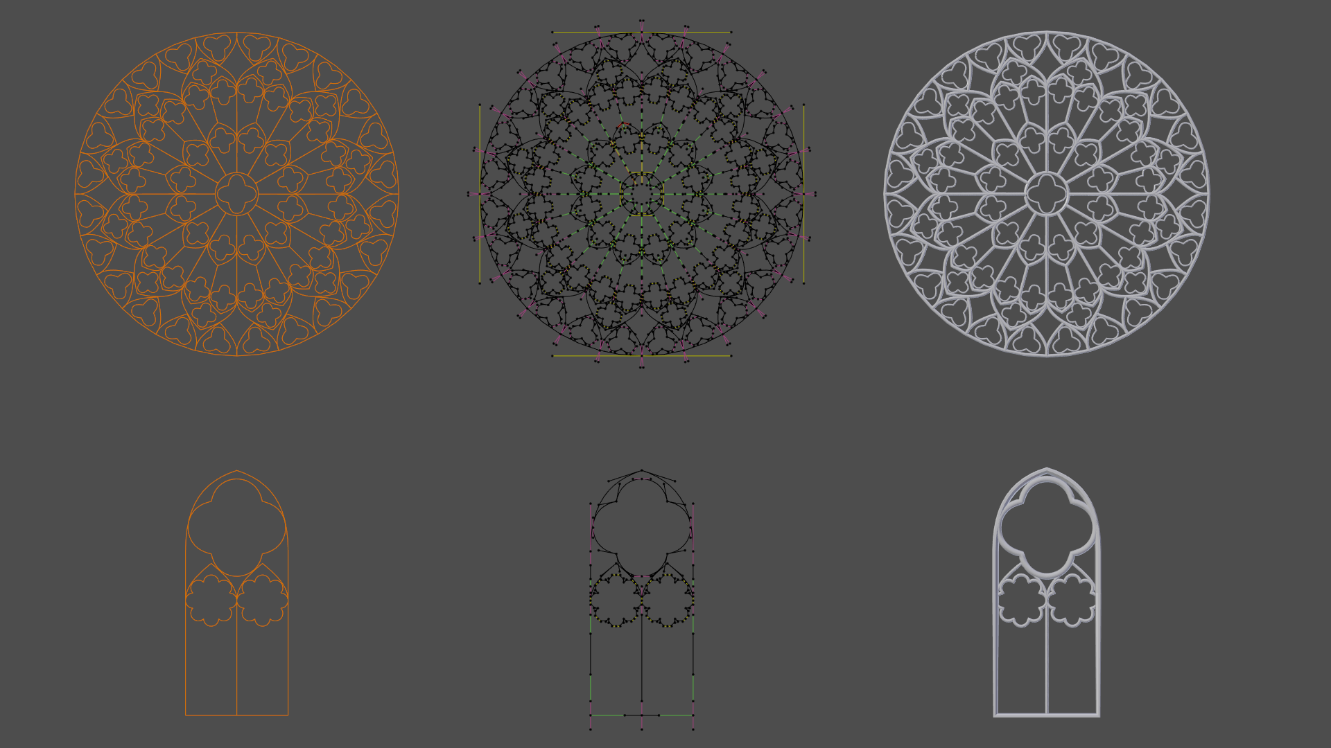 Let's have a word about the windows: most of them having this lancet armed shape which is so typical for Gothic architectual style. So I decided to create window frames by the use of Bezier curves: