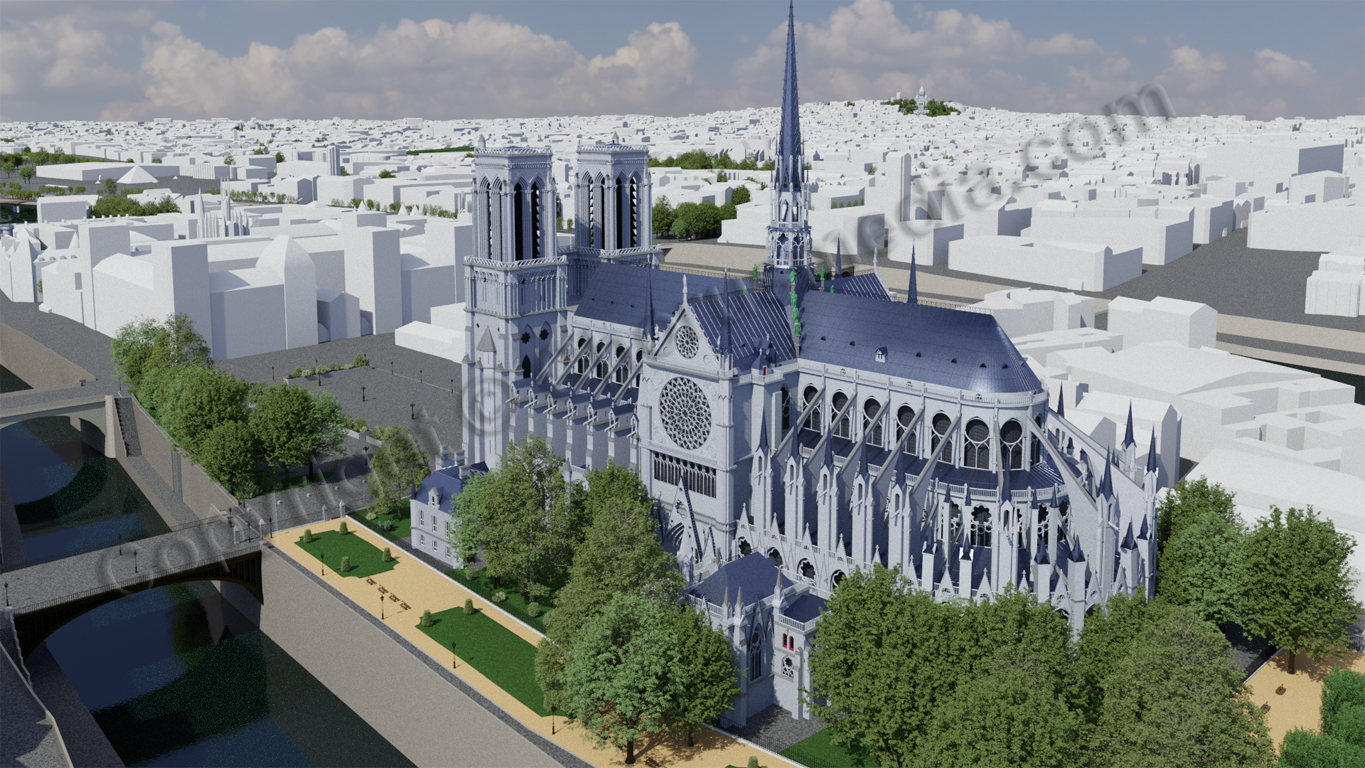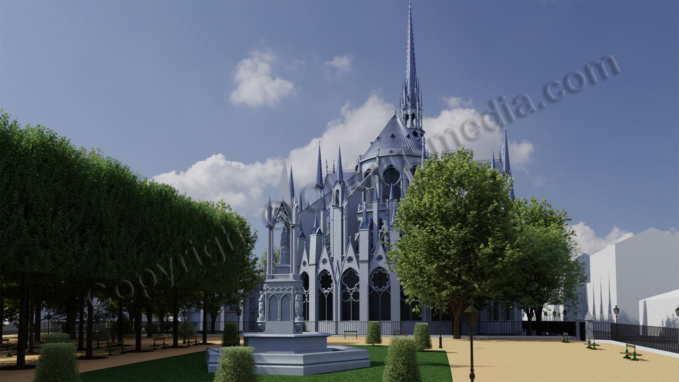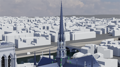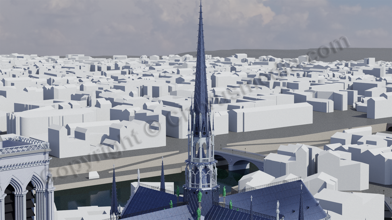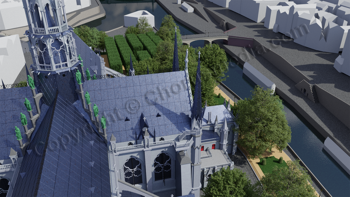 Anyway - the pics and videos of the burning cathedral grabbed my heart. So I decided to give it some place in my virtual Paris model and drag some special attention to it.