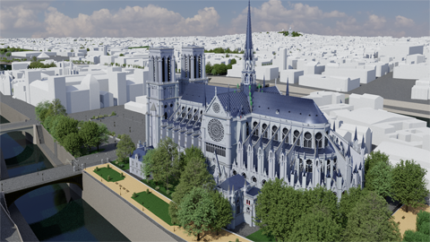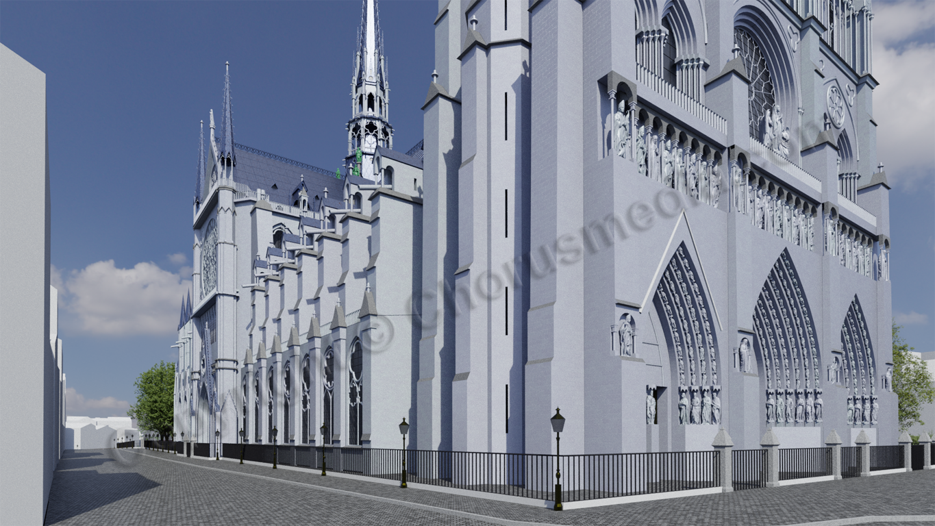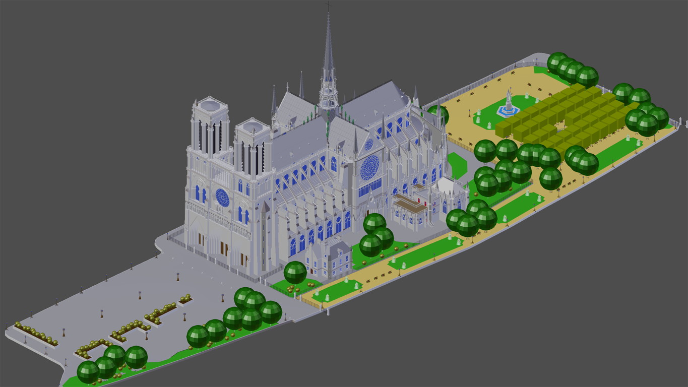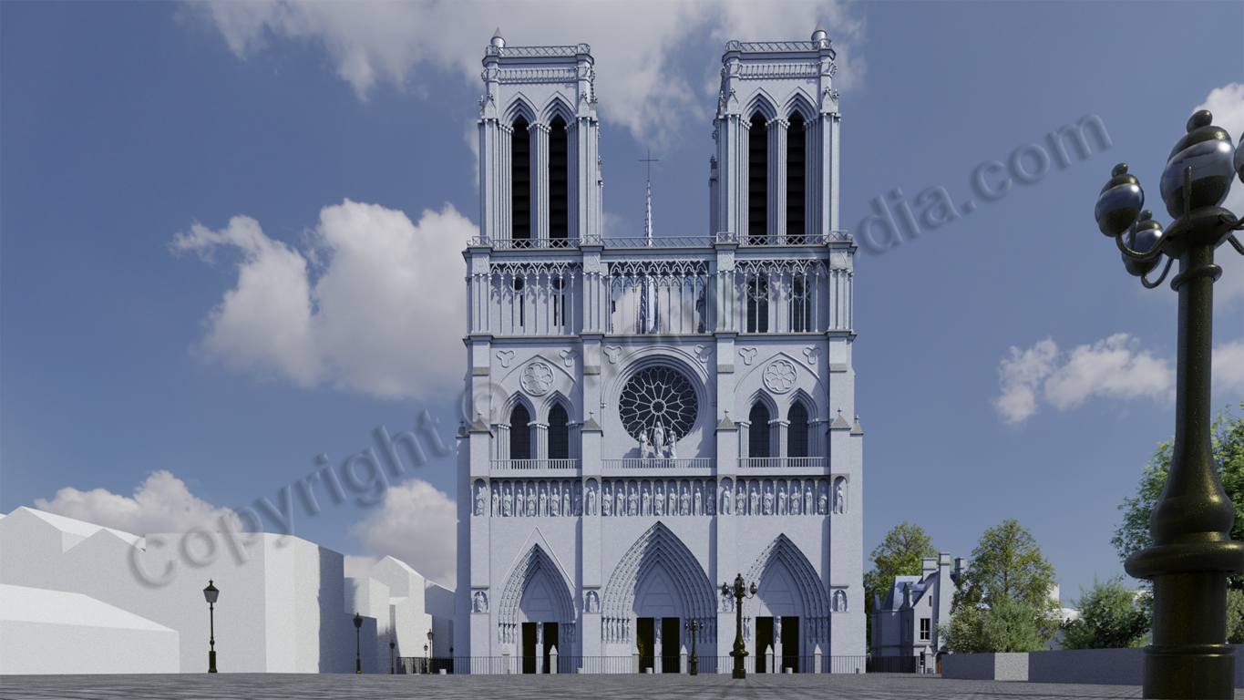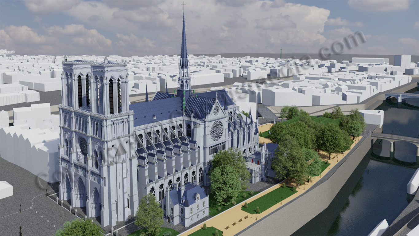 Anyway - the pics and videos of the burning cathedral grabbed my heart. So I decided to give it some place in my virtual Paris model and drag some special attention to it.