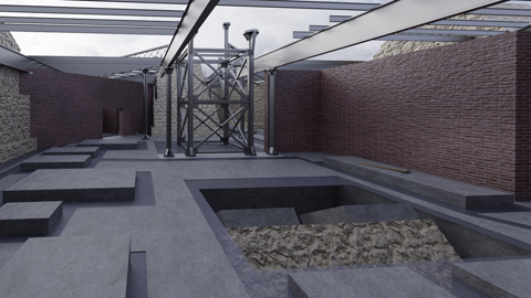 Let's have a look ath the Southern pillar's substructure: the machine room for the elevator.