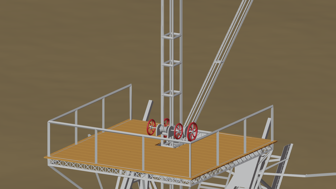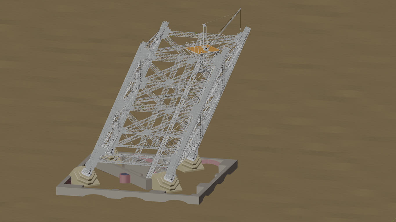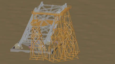 Scaffolding for the lowest module is quite simple - it's mainly a tripod and some bars: