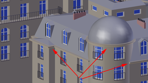 The lit windows don't fit to daylight scenes, so I'll try to dim them down. Shouldn't be a problem - just looking for some emission node....