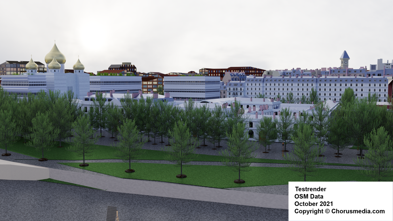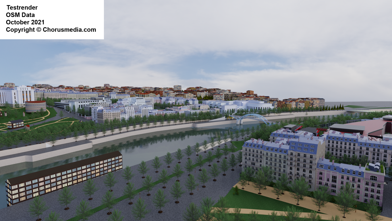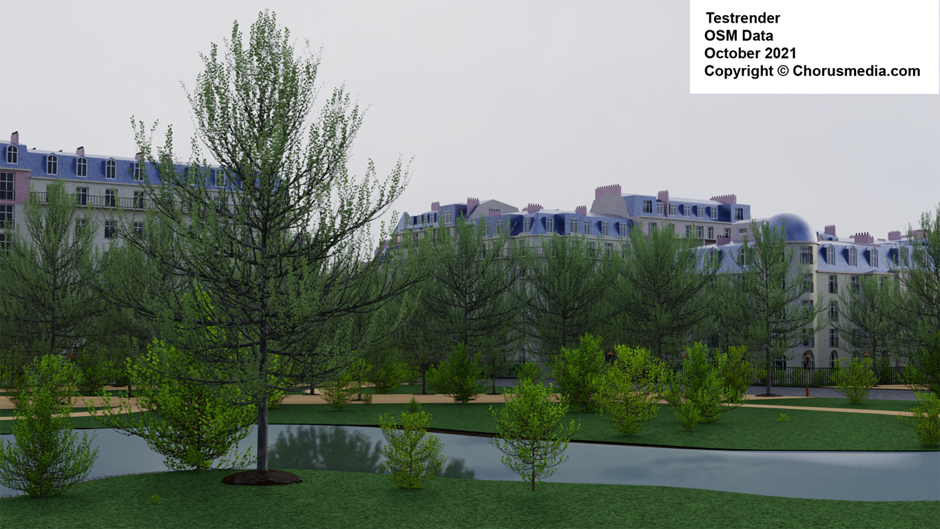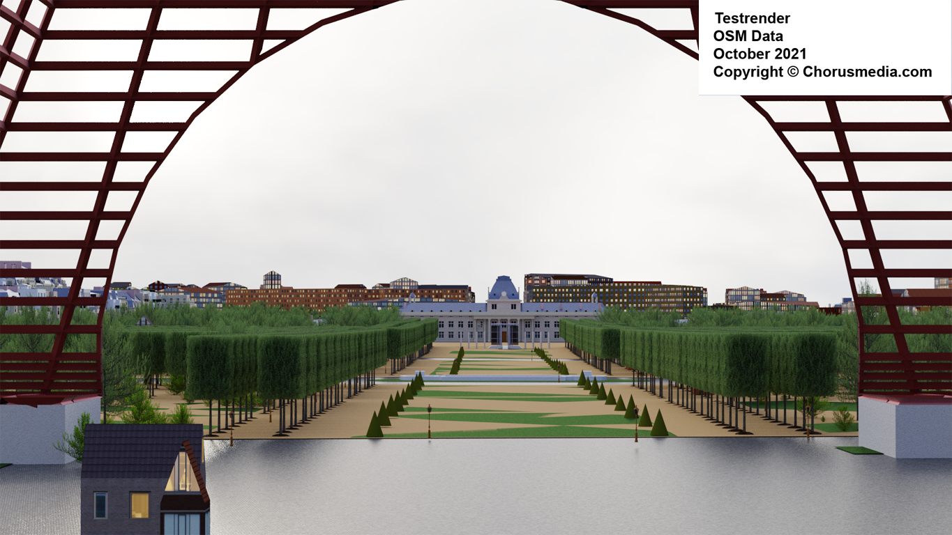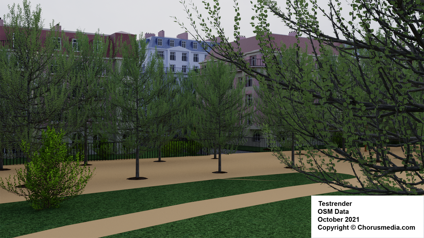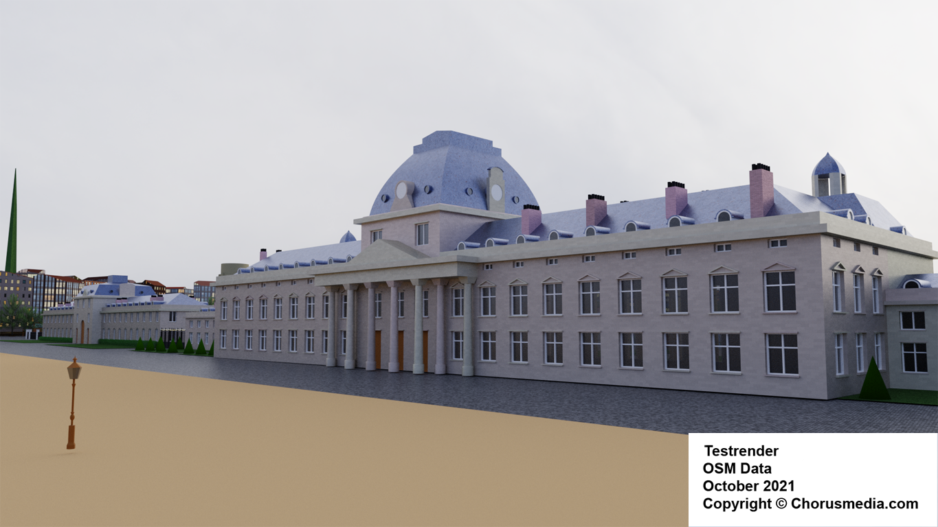 As expected the level of detail can absolutely not be compared (would be horrible if a script did the same job than me modelling houses for hours and hours ;-). So placing OSM buildings next to my own doesn't work. But to fill my background they do a good job, I guess - just watch renders 13, 14 and 16.