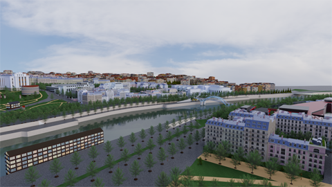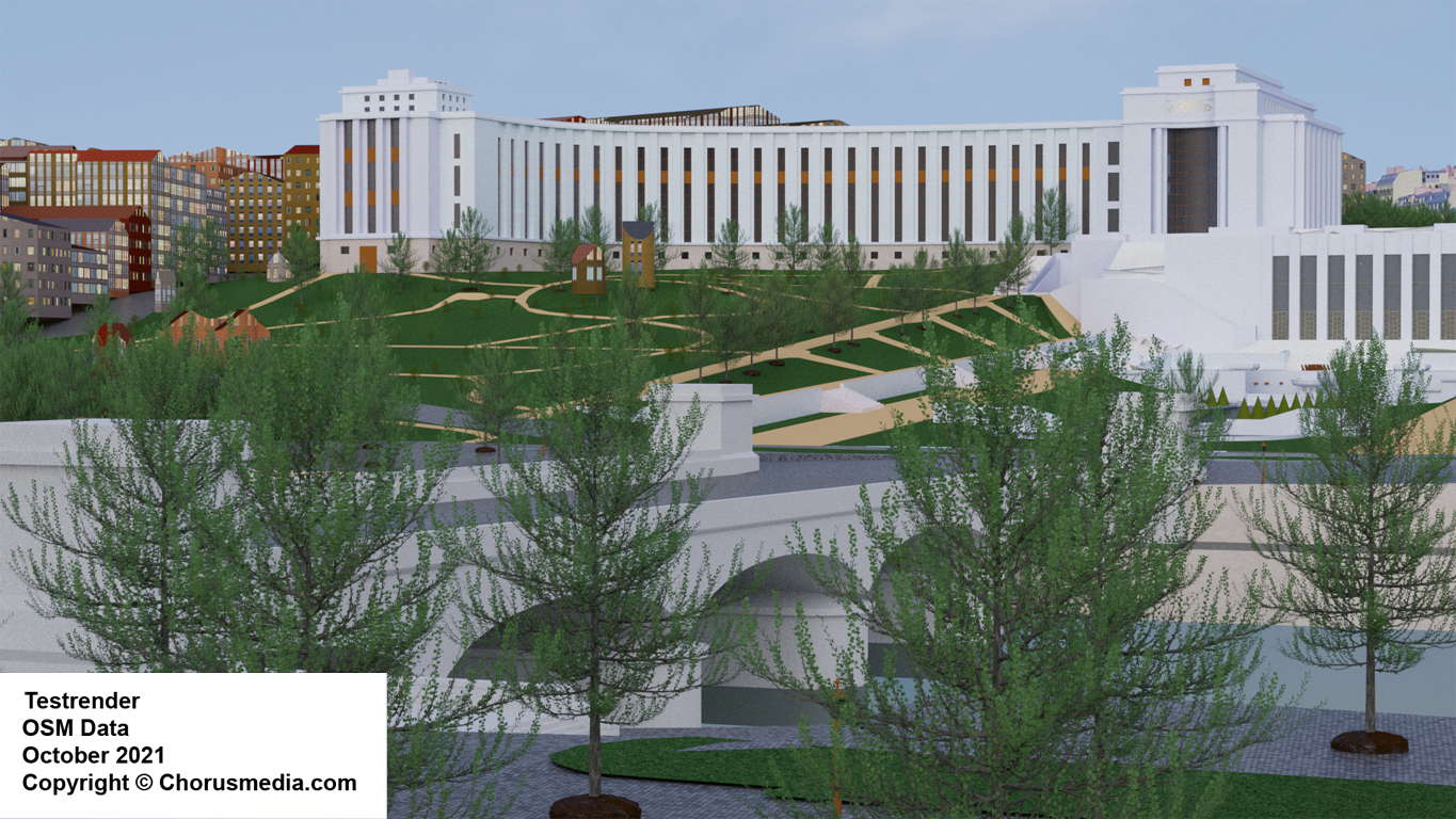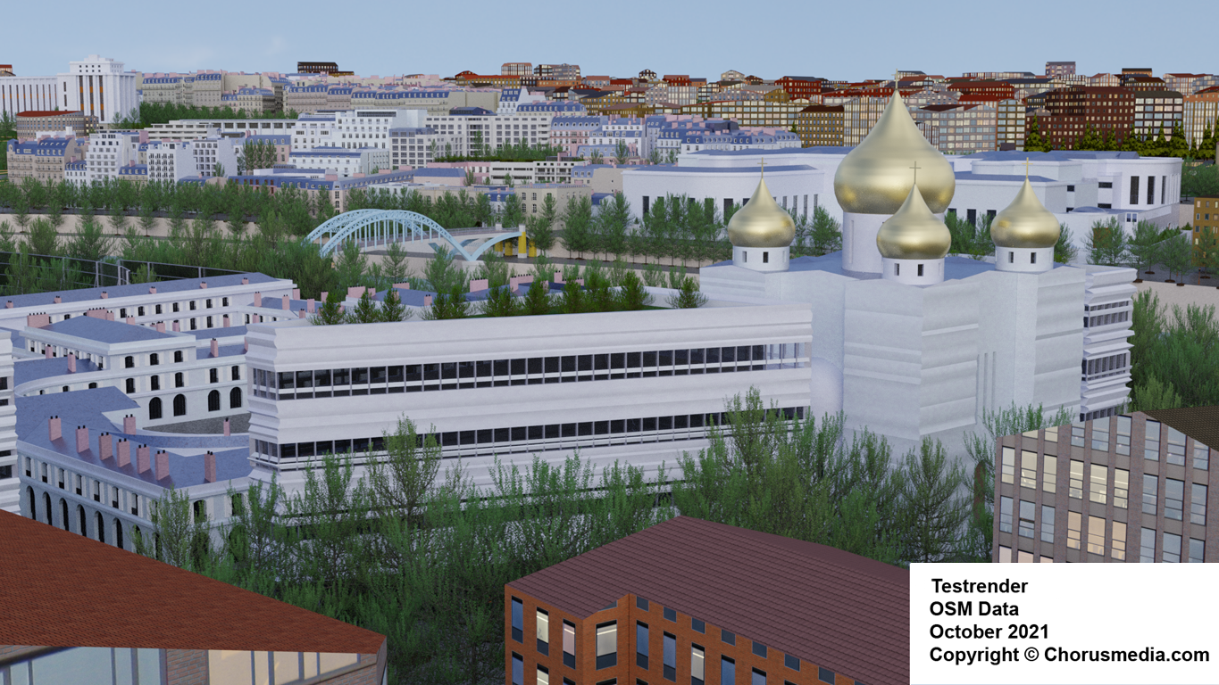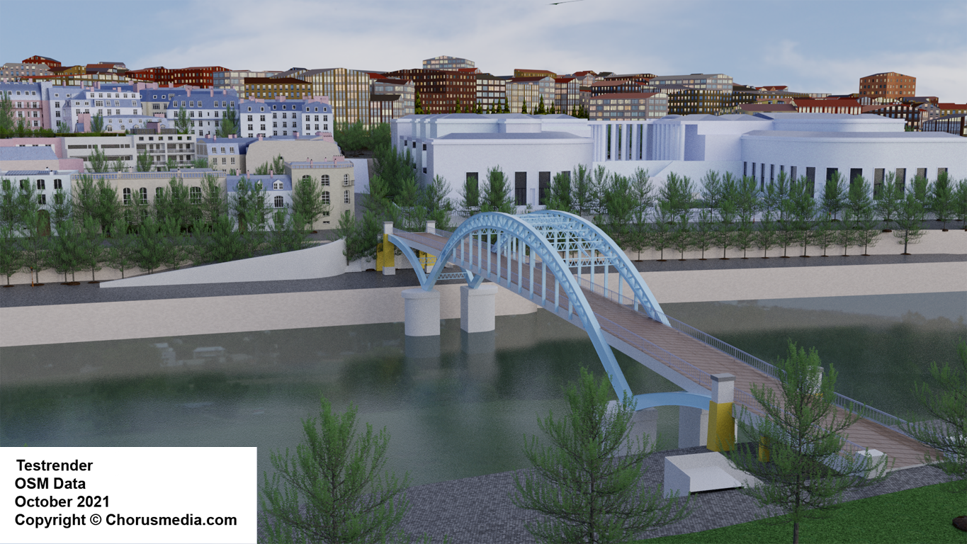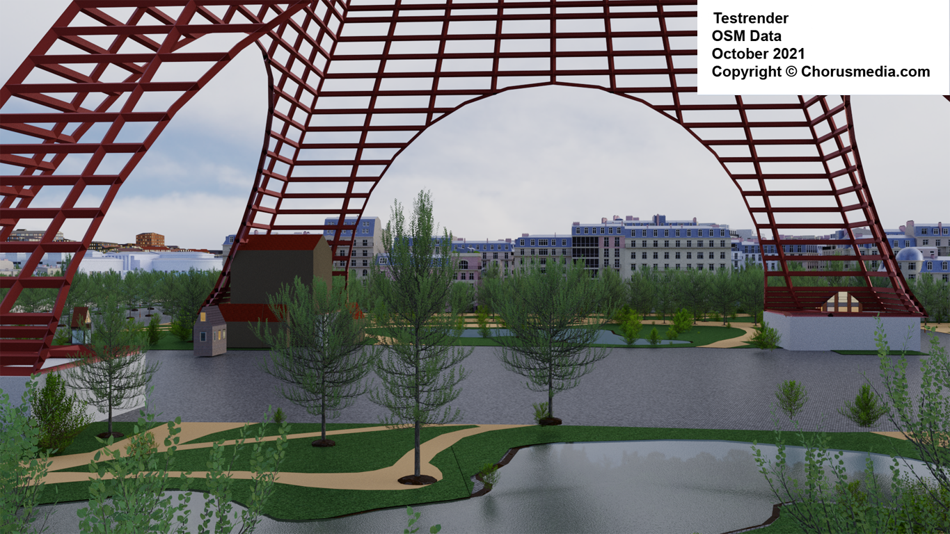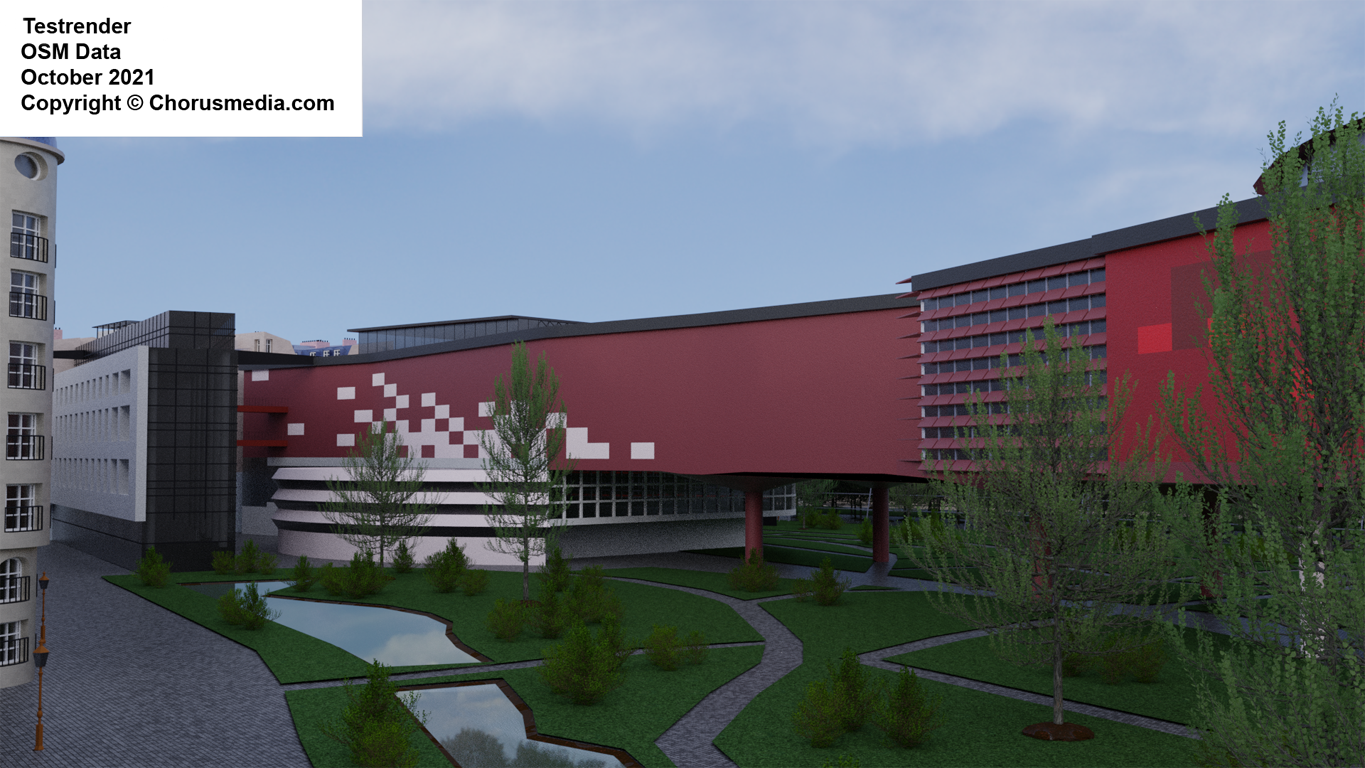 As expected the level of detail can absolutely not be compared (would be horrible if a script did the same job than me modelling houses for hours and hours ;-). So placing OSM buildings next to my own doesn't work. But to fill my background they do a good job, I guess - just watch renders 13, 14 and 16.