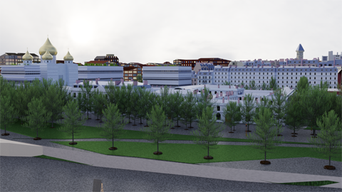 One bigger problem seems to be how to generally structure the terrain. At the moment we have some areas covered by buildings, and besides that there are a lot of blank, undefined areas covered with cobblestone plaster by default.
