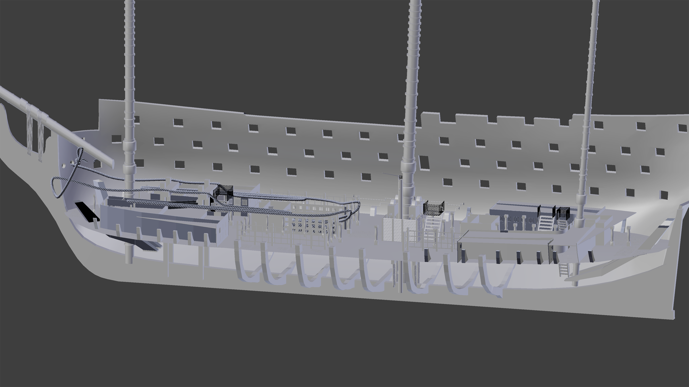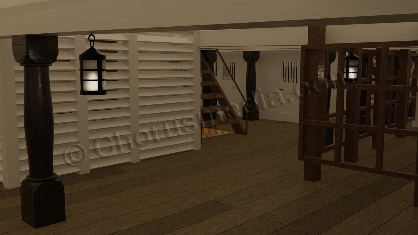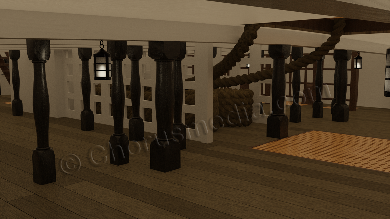 Ship's specialists had their cabins there: carpenter, (what they called) doctor, sail maker... As well the midshipmen had their "living rooms" here (should be the parts separated by grids you may recognize in the renders I think).