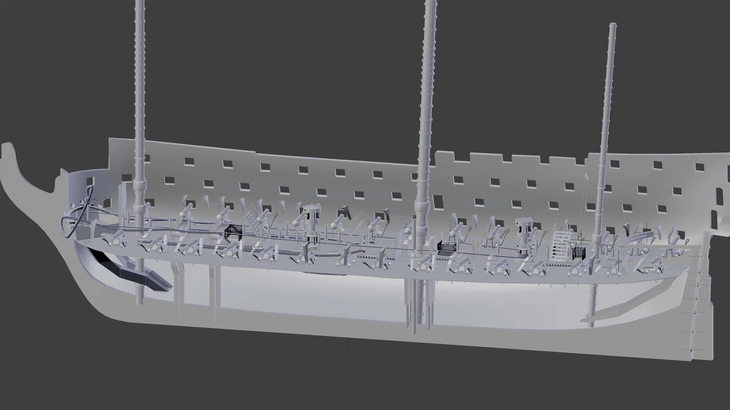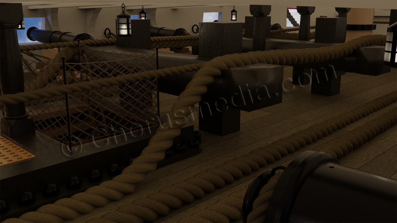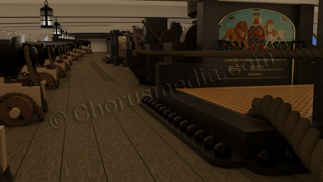 You'll recognize as well the capstans (at least the lower parts - the Victory capstans reached two decks), so that means that main work for serving the anchors was as well done here.